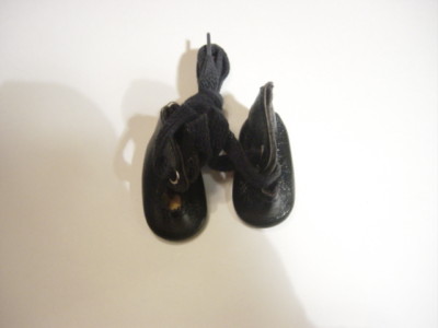 LEATHER DOLL SHOES BLACK ANTIQUE STYLE