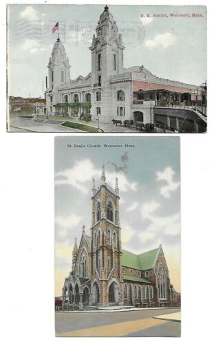 Title (ebay affiliate link): Worcester, MA - 2 Cards - Train Station Depot - Church