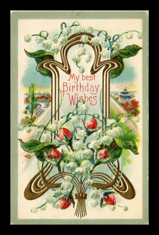Title (ebay affiliate link): US POSTCARD EMBOSSED BEST BIRTHDAY WISHES STRAWBERRIES WHITE FLOWERS