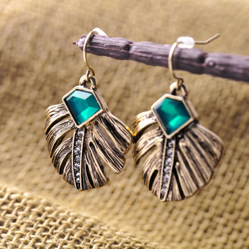 Title (ebay affiliate link): Retro Green Crystal Leaf Earring Antique Gold Plated Ear Hook Jewelry Gift