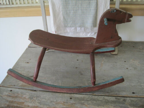 Title (ebay affiliate link): Vintage Primitive Blue and Red Paint Wood Child''s Rocking Horse American Find