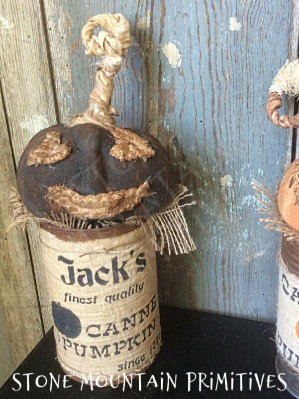 Title (ebay affiliate link): Primitive Jack O Lantern In Rusty Can~Canned Pumpkin~Folk Art Fall Halloween