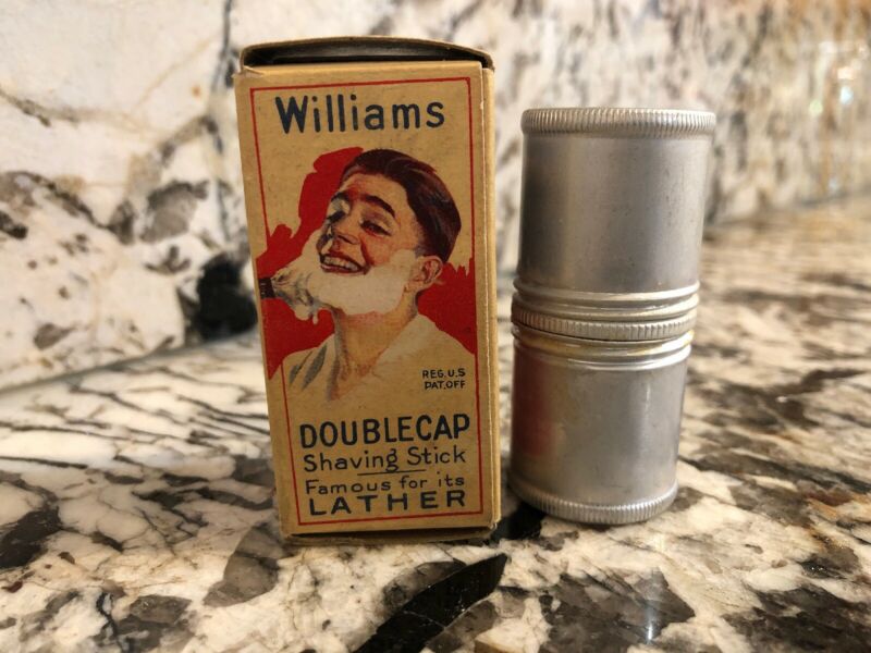 Vintage new double cap metal shaving stick J.B.Williams Co. tin & original box