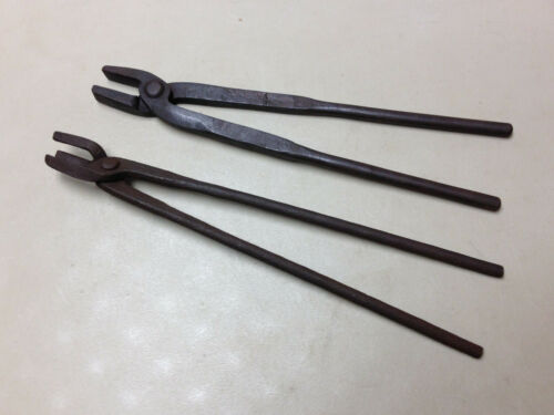 Title (ebay affiliate link): 2 pair vintage 15" Blacksmith tongs flat jaw & rare offset old anvil forge tool