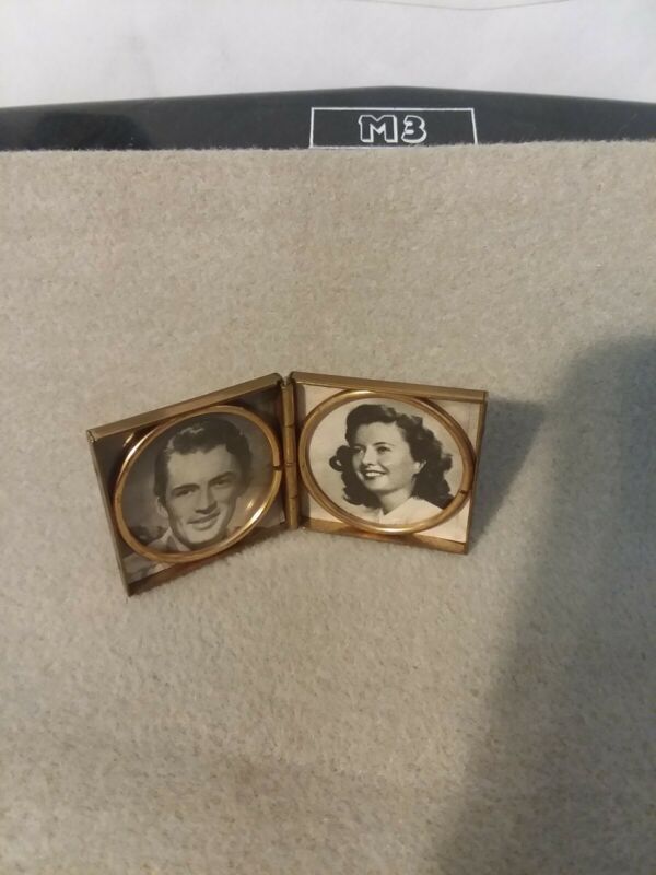 Vintage gold tone miniature hinged 2 picture folding frameÂ
