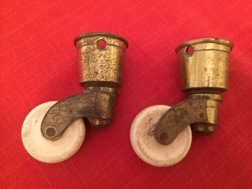 Pair of Victorian casters with white ceramic wheels for restoration/repair