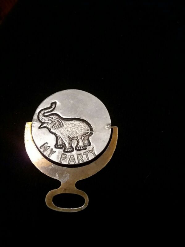 VINTAGE POLITICAL SPINNER Aluminum Flip Coin DONKEY And ELEPHANT My Party #1