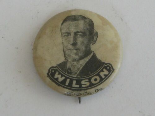Antique 1912 WOODROW WILSON CAMPAIGN POLITICAL PRESIDENT PINBACK BUTTON PIN
