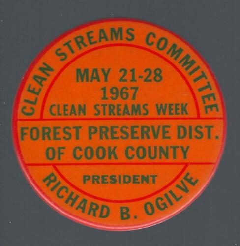 Title (ebay affiliate link): 1967 RICHARD OGILVE OF ILLINOIS - CLEAR STREAMS FOREST PRESERVE COOK CO. BUTTON