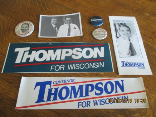 Title (ebay affiliate link): 1986 TOMMY THOMPSON FOR GOVERNOR OF WISC: 2 BUMPER STICKERS 3PINS PHOTO PHAMPL