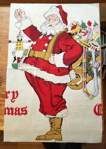Title (ebay affiliate link): Santa Claus, holding Clown Toy, Toys over his shoulder. 1932 Perkins Crepe Paper