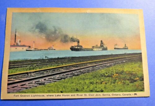 Sarnia ON Fort Gratroit Lighthouse Vintage Old Postcard PC5475