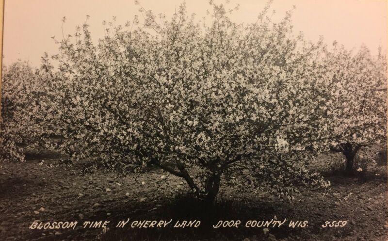 Title (ebay affiliate link): Vintage Door County Wisconsin postcard, Blossom Time in Cherry land, Door County
