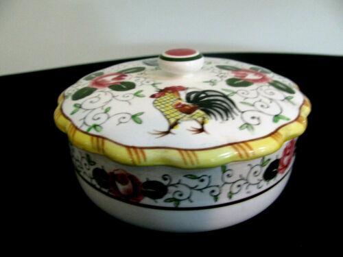 Title (ebay affiliate link): VINTAGE ROOSTERS AND ROSES ROUND COVERED CANDY DISH OR TRINKET BOX - JAPAN