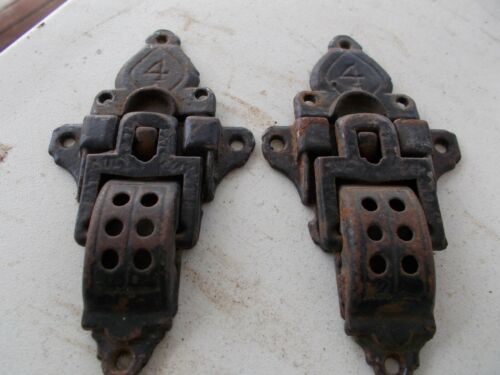 Antique Steamer Trunk parts 2 cast iron clasps #4