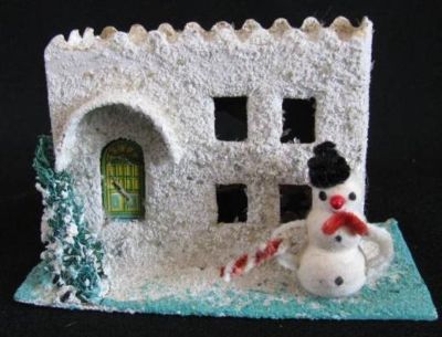 Title (ebay affiliate link): CUTE Vintage PUTZ VILLAGE House w/ SPUN COTTON SNOWMAN