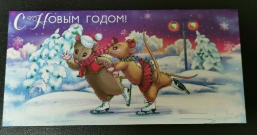 Title (ebay affiliate link): Happy New Year! Two mice ice skating, modern postcard