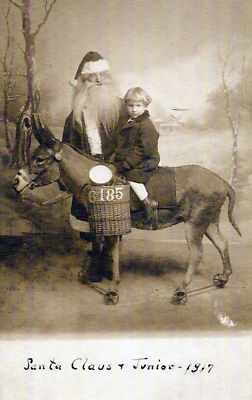 Title (ebay affiliate link): Real Photo Xmas PC. SANTA & BOY. HUGE STUFFED DONKEY