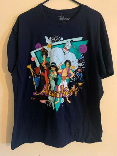 Title (ebay affiliate link): Disney ALADDIN Shirt WORN ONCE NAVY Size XL Jasmine, Genie, Jafar