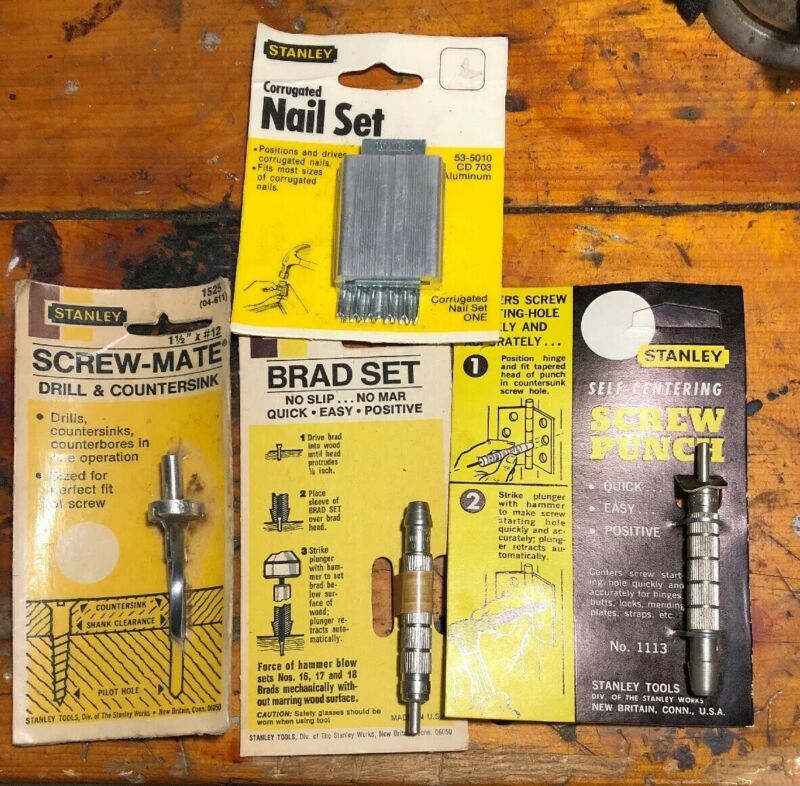 Title (ebay affiliate link): NOS Lot of 4 Vtg Stanley Screw Mate Counter Sink Drill Bit Screw Hole Brad Set