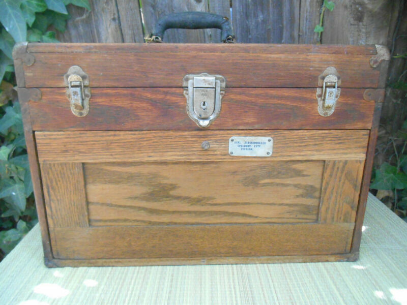 Title (ebay affiliate link): Vintage 20 x 9 x 13.5" OAK MACHINIST TOOL CHEST BOX 7 Drawer MISSING 1 #907