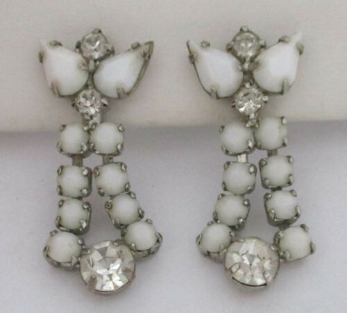Title (ebay affiliate link): Vintage Dangling Milk Glass/Crystal Rhinestone Earrings Weiss