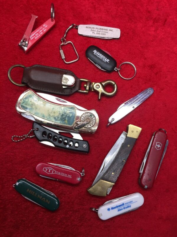 Title (ebay affiliate link): Vintage Pocket Knife Knives Lot Of 12 Fob Key Chain Advertisement Knife & More