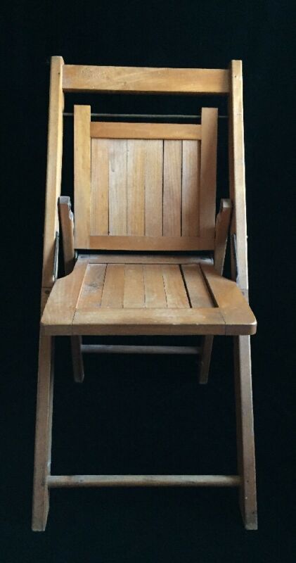 Vintage Child''s Wood Slat Folding Chair