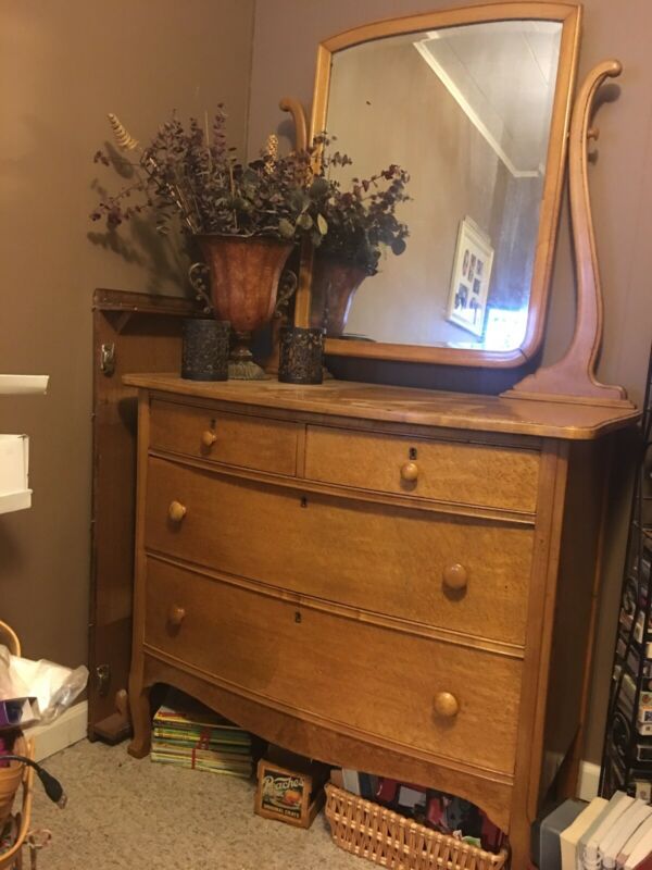 Vintage Birdseye Maple Princess Dresser With Mirror