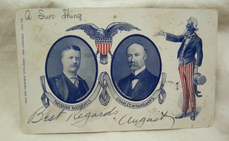 Title (ebay affiliate link): 1904 Roosevelt & Fairbanks w/ Uncle Sam Presidential Campaign Postcard