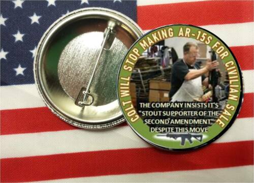 Title (ebay affiliate link): Pin Back Button1.6" Colt Stops Making AR-15s For Public Sale