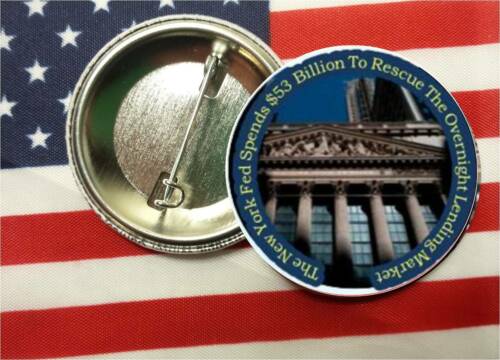 Pin Back Button1.6" Donald Trump NY Feds Spends $53 Billion To Rescue Oversigh