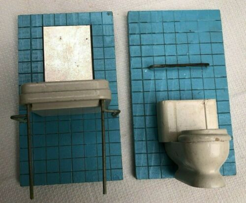 Title (ebay affiliate link): Vintage Wood 1940''s Doll House Bathroom Furniture Sink Toliets Aqua Blue White