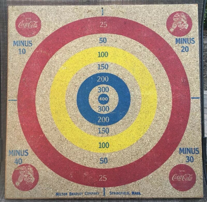 Title (ebay affiliate link): Coca-Cola, Milton Bradley, 2-Sided Dart Board & Baseball Game, Vintage