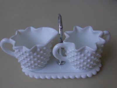 FENTON MILK GLASS HOBNAIL SUGAR CREAMER TRAY SET