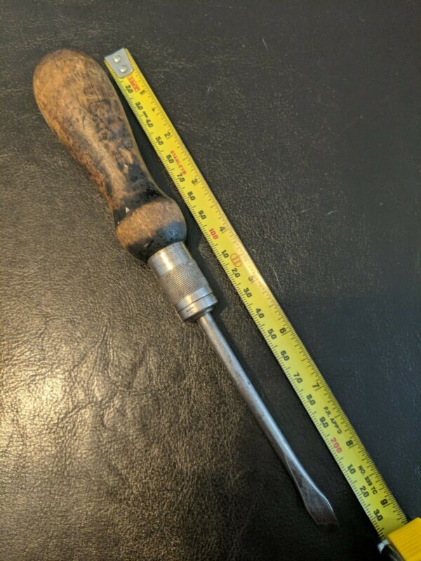 Title (ebay affiliate link): Vtg Millers Falls No.63 Ratcheting Flat Head Screwdriver w/ Wood Handle