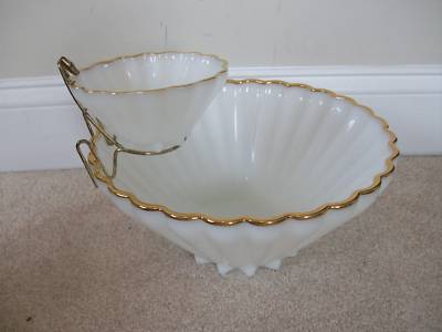 Lovely Vtg Milk Glass Chip & Dip Bowl Set~Gold Trim~