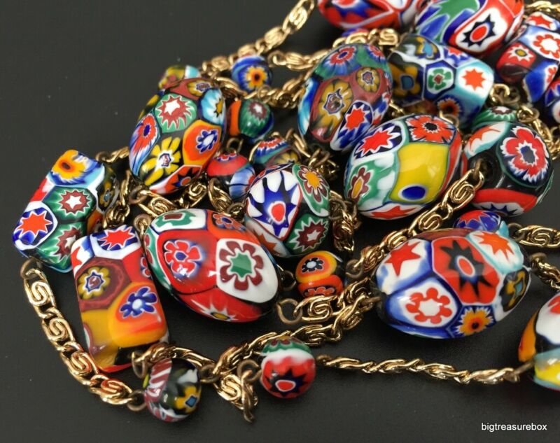 Title (ebay affiliate link): WOW Vtg ANTIQUE Necklace Victorian Art Deco Murano Millefiori Glass Bead lot a