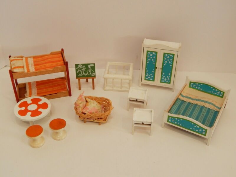 Title (ebay affiliate link): Lot of VTG LUNDBY Dollhouse Furniture Bed Wardrobe Table Chairs Mid Century