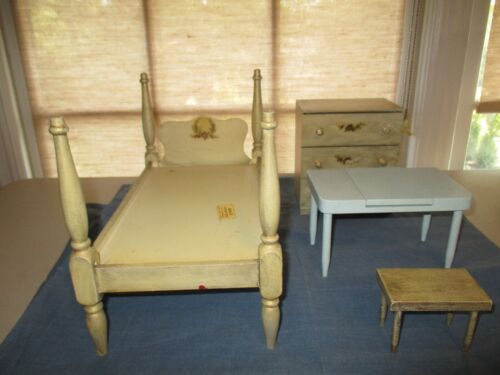 Title (ebay affiliate link): VINTAGE "HALL''S" 1.6 SCALE 4 POSTER BED, DRESSER, VANITY & BENCH DOLL HOUSE FURN