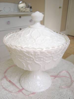 Fenton Silver Crest Spanish Lace Milk Glass Candy Dish