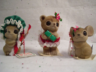 Title (ebay affiliate link): 3 Josef Originals Fuzzy,Flocked Christmas Mouse, Bear