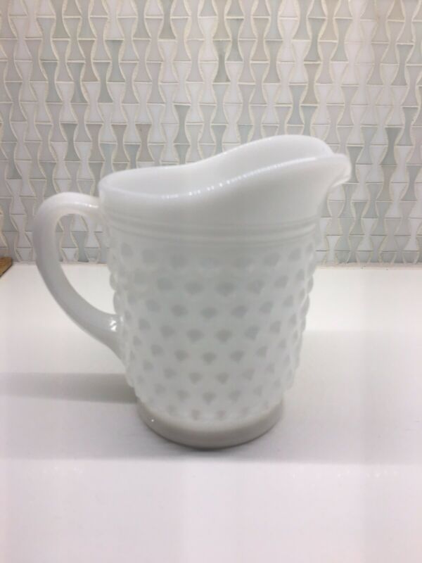 Vintage White Hobnail Milk Glass Pitcher. 5 Inches Tall