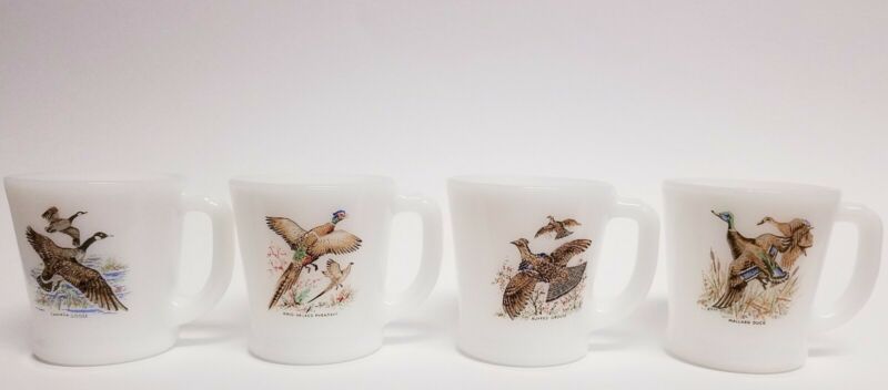 4 Fire King Wildlife Birds Cup/Mugs Milk Glass