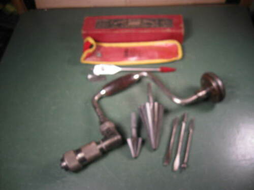 OLD USED VINTAGE WOODWORKING TOOLS BIT BRACE DRILL W/ EXTRAS