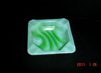 Vintage Akro Agate Jade Green Marbled Ash Tray