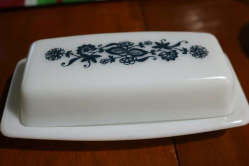PYREX OLD TOWN BLUE ONION BUTTER DISH Great Condition Milkglass White