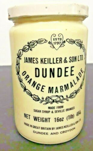 Title (ebay affiliate link): James Keiller & Son 16oz Dundee Orange Marmalade Milk Glass Jar