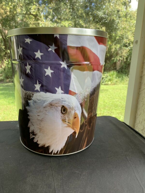 Title (ebay affiliate link): AMERICAN EAGLE FLAG POPCORN TIN CAN MINT 11 1/2 X 10