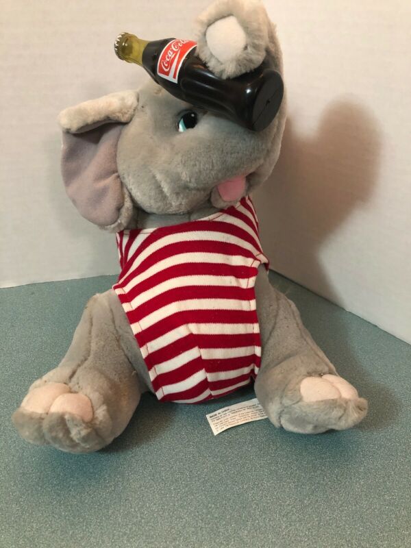 Title (ebay affiliate link): Coca Cola Elephant bathing suit coke bottle trunk plush stuffed animal 10" 1993